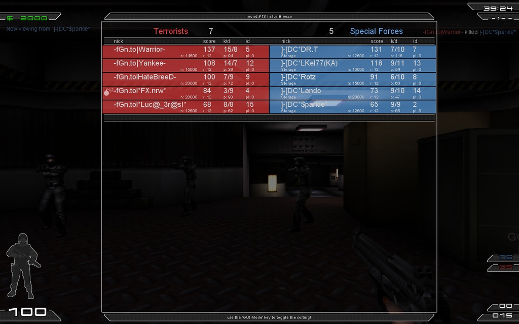| Bericht | dr-t kel rotz lando und sparkle traten gegen fgn an.gespielt wurde Train und Icy.nachdem wirdie ersten runden in icy was auf die mützte kriegten, berappelten wir uns undschafften noch ein 5:7.sie waren ganz gute einzelfragger und wir kriegten sie nur mit taktik klein, in diesem fall durch a rushen.6:6.Bei train freuten wir uns als swat 6:6 gekriegt zu haben, aber als ter haben wir am anfang wieder etwas geschwächelt, sodassn wir nur mit 7:5 gewannen. insgesamt faire gegner und ein spannendes match. thx an unsere gegner. MfG Rotz |