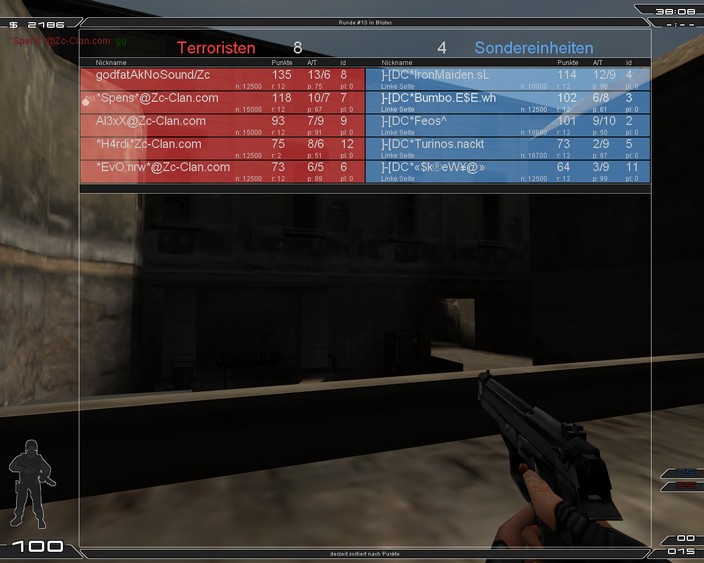 | Bericht | Eigentlich wäre heute XGC gegen ZC gewesen, aber die Jungs haben sich aus der Liga abgemeldet... da wir das Match schon terminiert hatten, haben wir es trotzdem gespielt. Es ging auf unseren Server, der heute mal wieder einen ganz schlechten Tag hatte. Neu war aber, das sogar das TS gelaggt hat^^ aber nicht lange. Bzw. so lange wir schlecht waren (Blister) war der Server schlecht auf ICY ging es dann wieder (auf ICY hat es uns nicht mehr gestört^^). Zum Match: Blister haben wir einfach so gezockt und naja schlechte 10 Runden geholt. 4 Runde auf unsere Map aufzuholen, ist normal im Bereich des möglichen. Auf ICY haben wir uns dann auch angestrengt, die Map mit 19/5 und das Match mit 29/19 nach Hause geholt! Somit haben wir uns auch die 3 Punkte in der XGC "verdient" ![]() Wie dem auch sei, danke an Spens und seine Jungs für das Macht PS: Spens schreibt immer so schön lange Warberichte, deshalb fällt meiner heute mal kürzer aus ![]() |