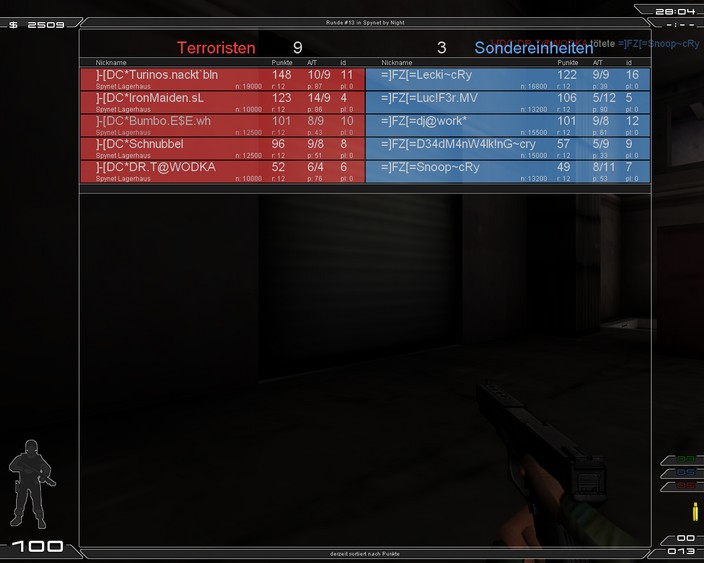 | Bericht | Heute ging es mal wieder gegen die Jungs um Picha und Lecki <3 FZ stellte ihren Crystal Sqaud, der in der 4ten XGC auf einen Aufstiegsplatz steht. Wir traten mit einem gemixten [3 XGC Lineup, 2 IGL Team] Team an. Gespielt wurden Icy und Spynet Auf Icy ging es gleich super los wir holten die ersten Runden locker flockig und hatten einen 6/1 Vorsprung. Doch danach änderte FZ ihre Taktik und sie standen besser. Wir verloren mal wieder komplett den Fanden bzw die letzten 5 Runden... Als SF standen wir dann wieder gewohnt sicher. Nach dem 3/3 gaben wir keine Runde mehr ab und holten ein zufriedenstellendes 9/3. Jetzt auf Spynet die leichte Terrorseite gewinnen und der Sieg könnte im Sack sein. Dies gelang uns auch, doch es fehlte eine Runde zum Sieg. Doh... jetzt zeigte uns FZ, das sie auf der Map zuhause sind. BamBoomBam langen wir 0/7 hinten. Doch irgendwie schafften wir es dann doch noch ein Ründchen zu holen juhu^^ gg und das Fungeflame ging los dj@work war wohl nicht erfreut, das wir gewonnen hatten . Ein paar lustige Sätze und ein paar unnötige (von beiden Seiten, aber immer im grünen Bereich), was aber die "warte-camp-vor-doch-nicht-vor-taki k-zeit" ein wenig verkürzte. Ein zweites Ründchen holten wir dann noch, damit das Ergebnis nicht ganz so knapp aussieht ![]() ![]() ![]() Thx an die Funzocker für diese lustige FMchen und noch viel Erfolg in der 4ten XGC! |