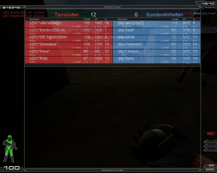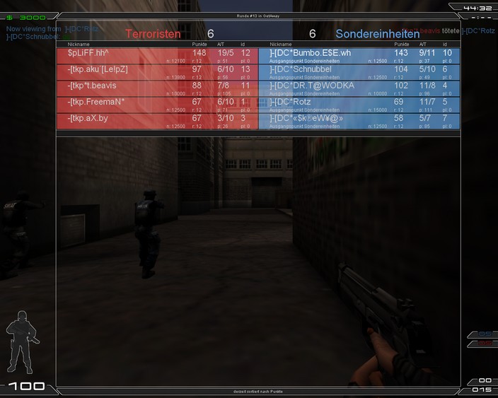 Bis heute Nachmittag wussten wir noch nicht, das wir gegen TKP ein FM hatte. Letzte Woche war das erste FM und danach wollte wir vllt. noch ein paar machen. Da sich aber NeXus von TKP nicht mehr gemeldet hat, ging ich davon aus, das wir keins mehr machen... naja da habe ich mich wohl geirrt^^ Nex hatte es auf seiner HP eingetragen! Unsere Map sollte Geta sein... daran sieht man, das wir uns nicht abgesprochen haben. Bekanntlich ist unsere Homemap ja ICY, naja jetzt schreibe ich schon wieder zu viel. Wir haben dann schnell ein Team auf die Beine gestellt und sind um kurz nach acht aufn Server gegangen. Da waren schon 5 von TKP. Da wir 6 waren, fragten wir nach 6on6. Sie hatten 6 und so konnten wir starten. Naja zum Spiel gibt es nicht viel zu berichten. Auf Scope hatten wir gar keine Probleme. 22 Runden haben wir hier selten geholt. Nun wollten wir ICY spielen, aber auf bitten des Gegner, der die Map wohl nicht so gut kannte, haben wir auf Geta geswicht. Dort ging es wie auf Scope weiter. Erste Seite 10/2 danach ist dann einer von TKP runter und einer Ringer aufn Server gekommen. Jetzt wurde es ein wenig spannender und wir holten nur noch 6 Runden, was uns aber ziemlich egal war.