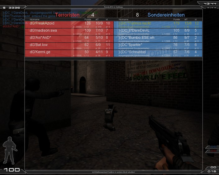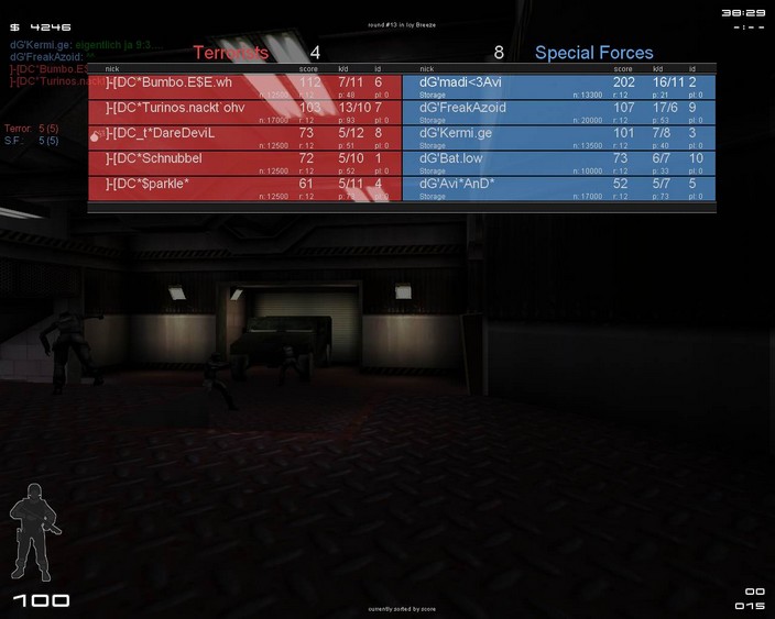 | Bericht | Gegner dG, Ziel: keine Klatsche bekommen ![]() Auf dem Speiseplan standen heute Getaway und ICY. Auf Geta haben wir für unsere Verhältnisse sehr sehr gut gespielt. Als SF verteidigten wir sehr gut und erkämpfen uns 8 Runden. Als Terror wurde es für uns sehr schwer. Doch wieder spielten wir gut und holten 5 Runden. Somit hatten wir DEREN Map mit 13/11 gewonnen. Die Stimmung im TS war bestens. Jetzt noch unsere Map nach Hause bringen und unsere lange Niederlagen Serie hat ein Ende Doch es kam wie so oft in den letzten Wars. Wir verschenkten wieder zu viele Runden auf ICY. Als Terror ging es noch ganz gut los doch mit der Zeit klappten unsere Angriffe nicht mehr. Ernüchternde 4 Runden für uns. Na ja dachten wir uns, 7 Runden für ein Draw 8 Runden für ein Sieg sind sicher drin und sie waren es auch. Doch wir hatten heute komischerweise mit den Rushs von dG sehr große Probleme. Die Blocknades kamen nicht und es wurde schlecht verschoben. 3 Runden vor Schluß hatten wir noch alle Chancen auf ein Draw, doch wir verkackten alle 3... eine sogar sehr knapp. Schade, da wäre sicher mehr drin gewesen.Danke an .GSL^^ und sein Team für das feine, lustige, spannende, lame- und flamefreie also kurzgesagt: Perfekte FM! Sehr gerne mal wieder ![]() |