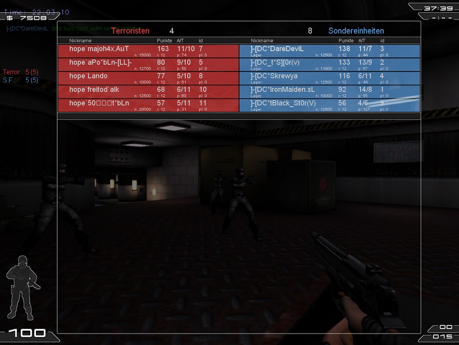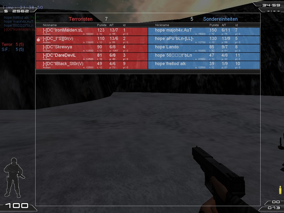 | Bericht | Heute stand ein FM gegen die Neugründung "The Hope Never Dies" an... Jeder von uns kennt eigentlich fast jeden Member von hope´. Daher wussten wir auch, wie stark sie ungefähr einzuschätzen waren. Doch nun zum Spiel ... Angefangen mit deren Map Trainstation: Auf der Seite der Terroristen ging es mit verteilten Positionen auch recht zügig los. Angespannt waren wir alle. Denn keiner wusste so wirklich, wie hope` (mit teils verschiedenen Ex – Clans) so das Teamplay zustande bekommen würde. Zu unserer großen Überraschung konnten wir uns doch sehr hoch auf der Defensiv – Seite von Trainstation halten und holten somit 10:2 Punkte. Puh *schweißabwisch* .Seitenwechsel... Nun lag es an uns, die Hossen zu befreien. Auf Swat war es natürlich schwerer uns gegen hope` durchzusetzen. Trotzdem konnten wir dem Gegner mithalten und verloren knapp mit einem Punktestand von 5:7. Halbzeit: 15:9 Nach ca. 4-5 Minuten Schallgeschwindigkeit und Toilettenpause waren wir endlich wieder bereit. Nun hieß es unsere Homemap Icy Breeze. Wie immer ist es kalt dort. Aber wir haben uns ja schon daran gewöhnt. ![]() Los ging es auf Terror. Da Lando die Taktik von uns sehr gut kannte, wussten wir gleich, das es nicht so einfach werden würde die Bombe zu legen. Geschweige denn die Leute von hope` zu eleminieren. Aber gut... Wir haben unsere Taktik durchgezogen und mussten leider auch ein paar Runden abgeben. Dennoch gewannen wir auf der aktiven Seite mit 7:5 Punkten. Zwischenstand nach 36 Runden: ]-[DC 22 Punkte - hope` 14 Punkte Jetzt hieß es für uns auf der Seite Swat... 3 Punkte zum Sieg. Adminreset und auf los gings los. Nach den ersten 3 Runden waren wir (bzw. ich) an zweifeln, ob wir überhaupt unsere 3 Punkte schaffen würden. Denn die ersten 3 Runden hatten wir verloren. Doch dann kamen wir... zusammengerissen und ordentlich sitzend haben wir Runde für Runde die Punkte geholt und alles abgeblockt, was hope` versucht hatte. Eine Runde konnten sie noch holen und dann war auch schon Schluss. 8:4 Punkte hieß es am Ende für uns. Und somit ein verdienter 30:18 Sieg für uns. Vielen Dank an hope` für das Lame- und Flamefreie Match. Das Rematch wird’s bestimmt auch bald geben ![]() So Long MfG Nico |