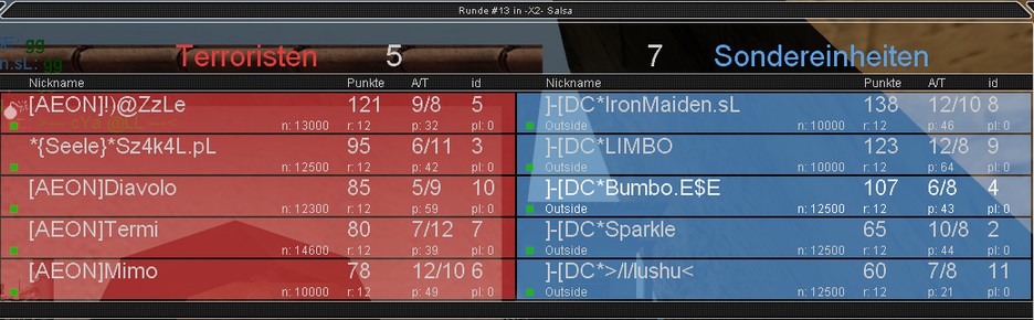 | Spieler | $parkle*, >Mushu<, BlackScorpion, Bumbo, IronMaiden.sL, LIMBO, | |||